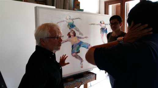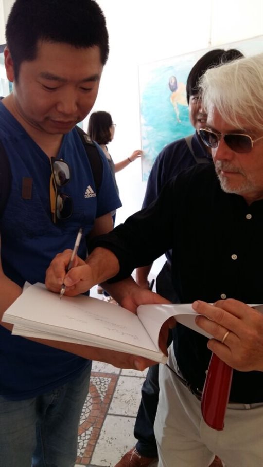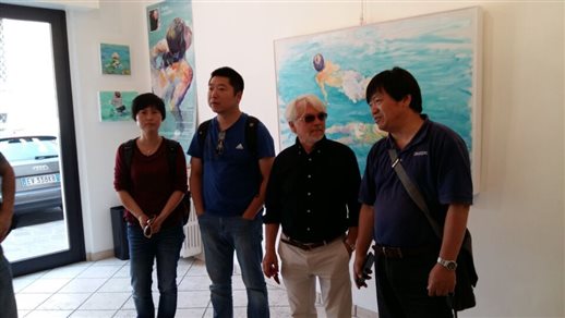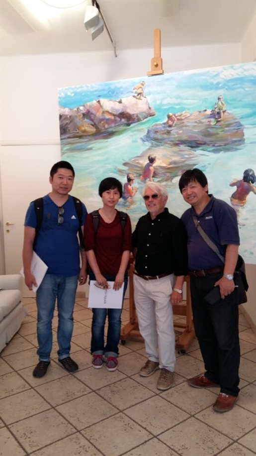 当地时间6月15日,世界文化遗产古城曼托瓦(mantova),当代艺术系教师与居住于此的意大利艺术家克劳迪奥(claudio)见面。克劳迪奥热情的引导大家参观他的画廊和工作室,与教师们一起分享他的创作理念,交流讨论当代艺术现状与走向。临别,他向教师们赠送了画册,并表达了与草榴 师生交流合作的强烈愿望。