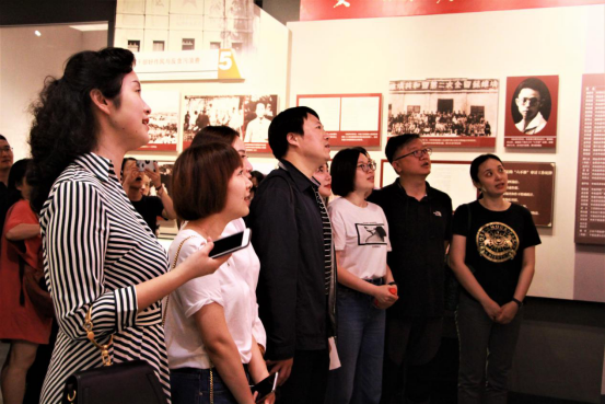 教职工党员在中国共产党纪律建设历史陈列馆认真的观看展览