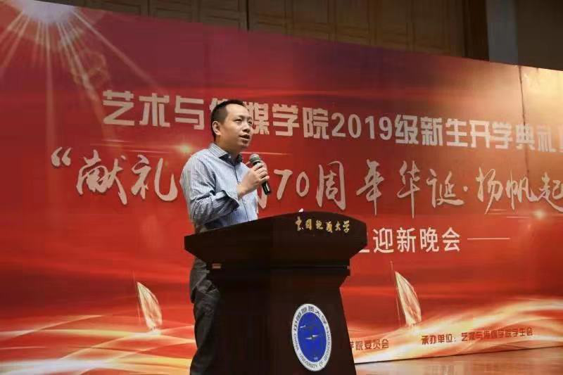 所有老师向2019级新同学表示热烈欢迎,希望同学们在大学时光中珍惜时间、独立思考、关心他人。最后她以女排精神与大家共勉,鼓励青春只有努力过才能无悔。
