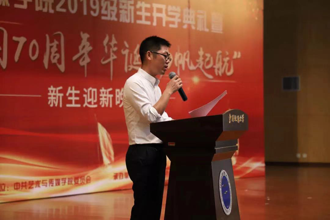 新生代表、音乐学2019级本科生王灶格满怀激情地讲述了自己从三晋大地来到江城武汉所感到的新奇以及自身对大学生活的憧憬与期待,代表全体新生发表了属于每个人的“青春宣言”。