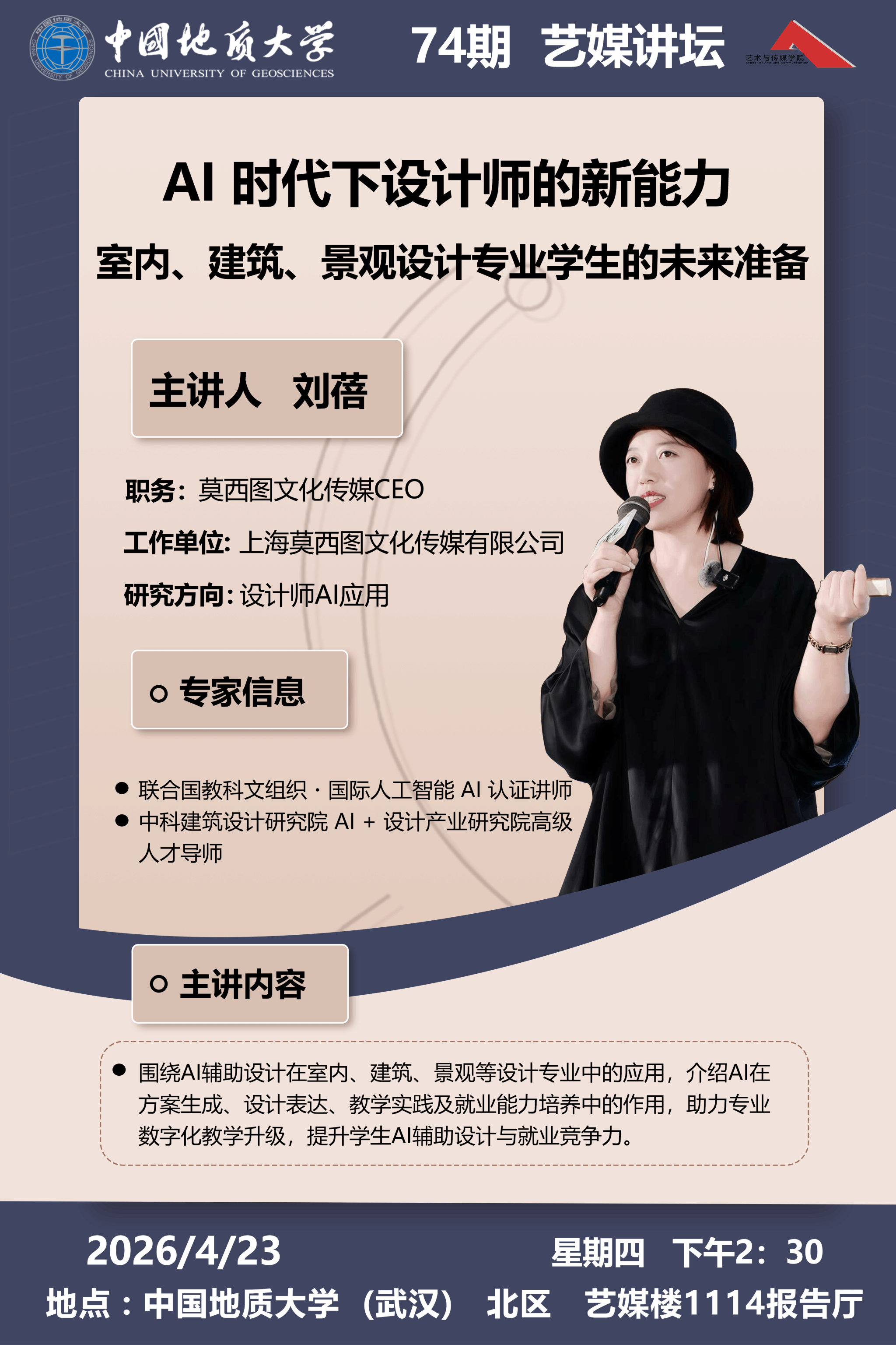 【2026年4月23日】学术讲座:中科建筑设计研究院AI+设计产业研究院高级导师刘蓓讲座