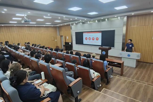 首先,2023级本科生辅导员陈习良简单介绍本次宣讲会的流程与学生组织基本情况。随后,党建办青马营、学生会部门负责人分别从部门设置、工作内容以及部门特色等方面对各自管理的部门做出了详细的介绍,用视频结合幻灯片放映的宣讲方式,拿出“十八般武艺”,帮助2023级新生更好地了解草榴