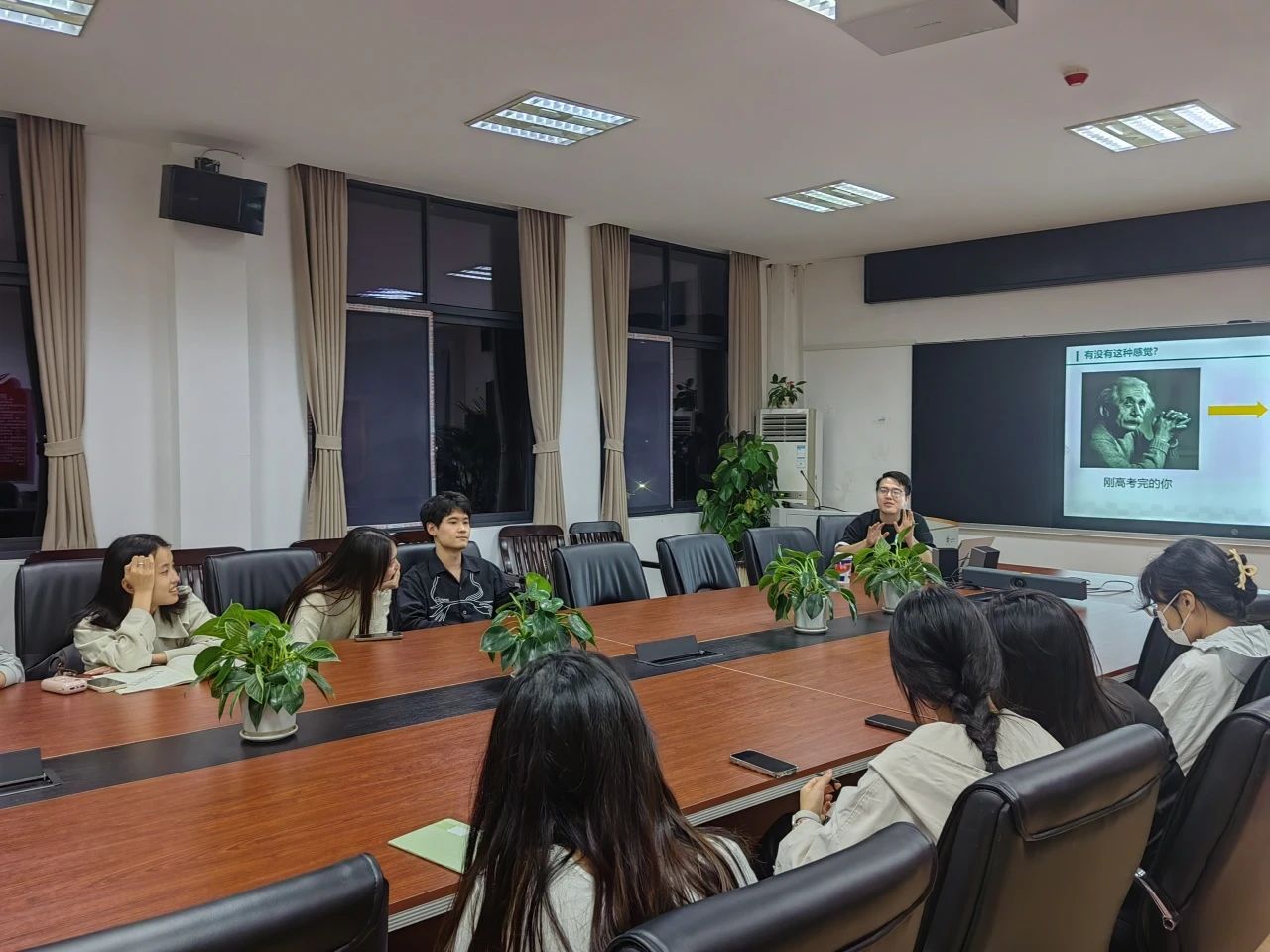 楼1209顺利召开。新东方教育科技集团有限公司武汉分公司讲师袁柳明围绕当今就业现状、出国留学状况和雅思备考规划进行了生动有趣的讲述。