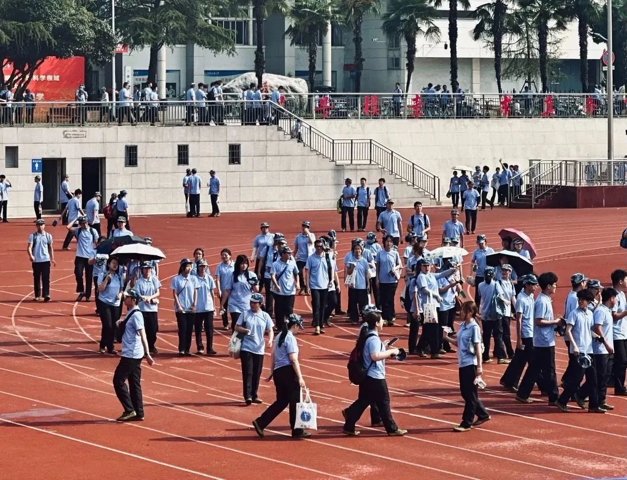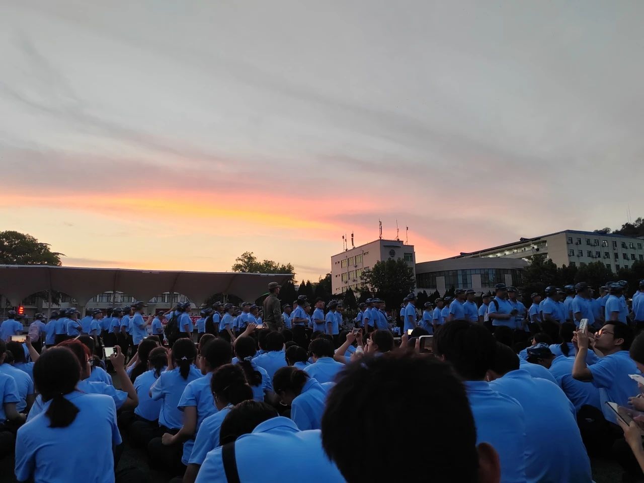 人的姿态愈发坚毅。操场上有同学们整齐的踏步声,有响彻云霄的口号声,汗水顺着脸颊滴落在制服上,高度紧张的思想和敏捷有力的动作,无一不构成一道亮丽的风景线。军令是处,铮铮铁骨作响;军歌嘹亮,满怀壮志将酬。便是汗浸衣襟,纵有骄阳似火,吾新生青年纹丝不动,身板坚如钢。