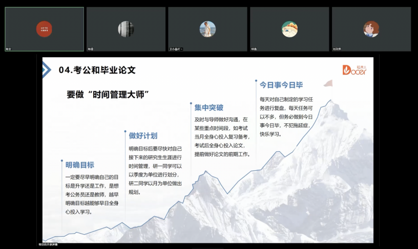 其次,杨亚师哥围绕资讯收集、备考规划、时间管理三个方面与同学们分享考公考编过程中的重点注意事项,并提醒同学们平衡好就业与毕业,认真对待各环节与流程。